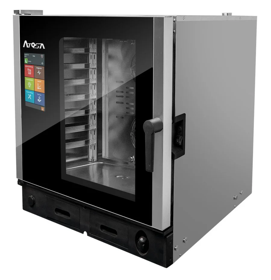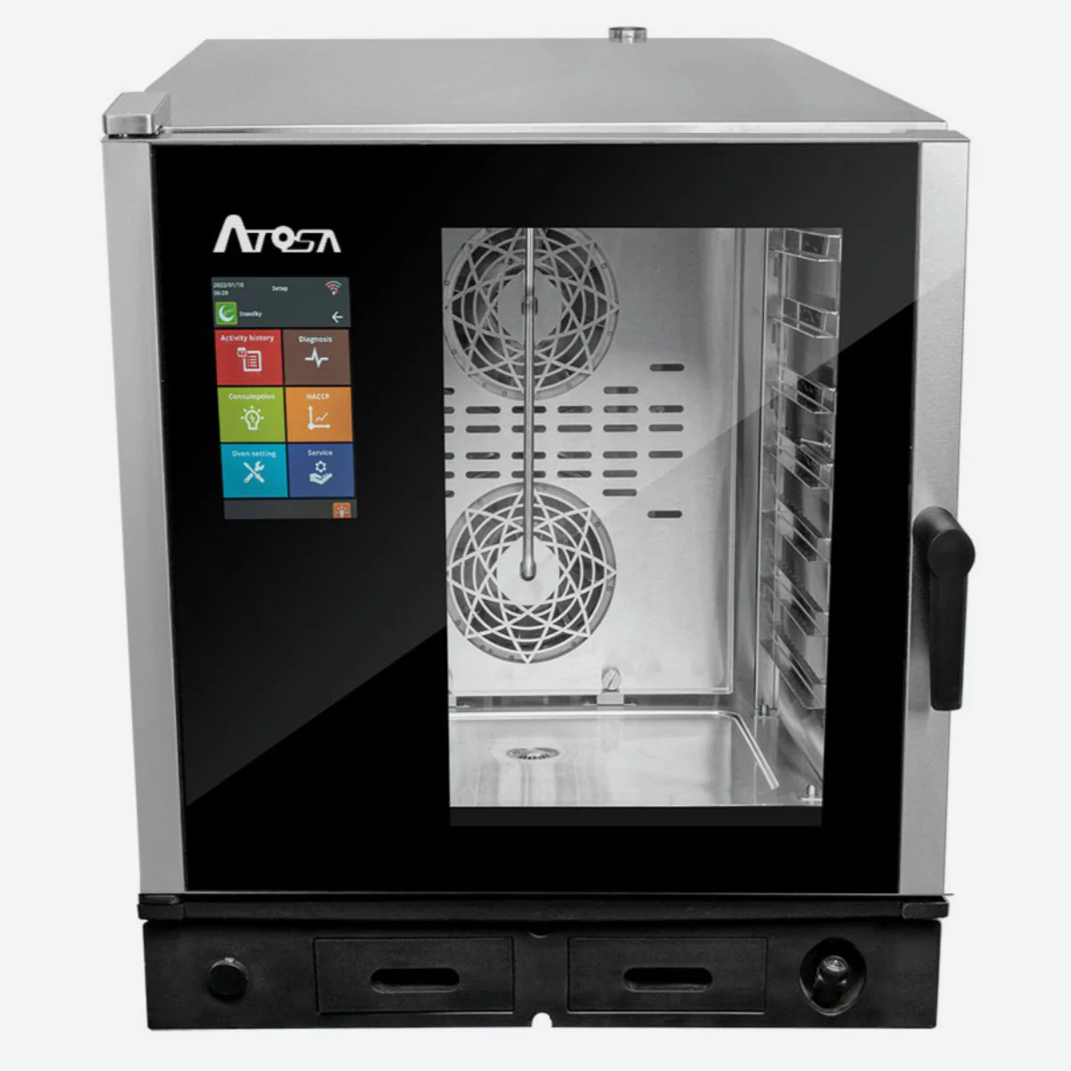 Cuptor COMBI OVEN EPC-0711E2, echipat cu 7 tăvi GN 1/1, oferă soluția ideală pentru bucătăriile de dimensiuni medii care au nevoie de versatilitate și performanță. Capacitatea sa extinsă permite gătirea simultană a unor cantități semnificative de alimente, reducând timpul de pregătire fără a compromite gustul sau calitatea.